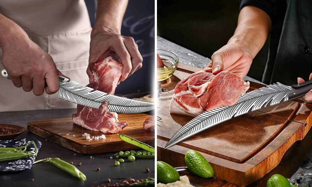 Combining beauty and power, Feather Pattern Knife slices with ease and fits every